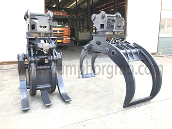 抓木器由特殊Q355B錳鋼材質(zhì)鍛造加工經(jīng)拋丸處理,可進行木材、甘蔗裝卸,石頭、鋼材等堅硬物質(zhì)抓取,廢棄物作業(yè)等各種夾裝操作,具有抓取量大、質(zhì)地輕,強度高,耐磨性強、操作簡單輕 便等特點,同時采用先進的單油缸直齒式直立式馬達回轉(zhuǎn)裝置,馬達帶緩沖保護閥、油缸裝有壓力保持閥、多重液壓保護裝置,結(jié)構(gòu)合理,使用效果好、壽命長,抓木器現(xiàn)有固定夾、液壓腳踏控制、電控手柄控制三種,電控控制-配合自主研發(fā)的雙手柄電控系統(tǒng),改裝簡便,操作動作順暢,抓取軌跡曲線科學(xué)合理,適合多元化品牌挖機改裝!