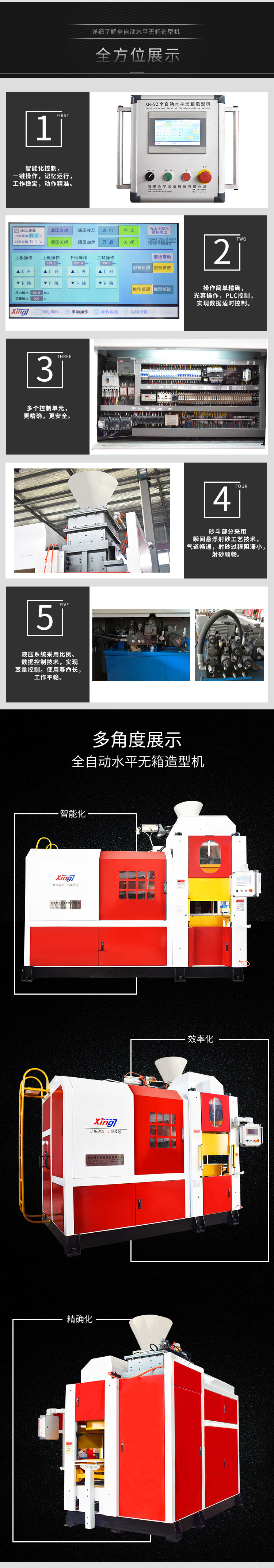 射砂系統(tǒng):懸浮壓力射砂,砂型緊實度高,成型時間短